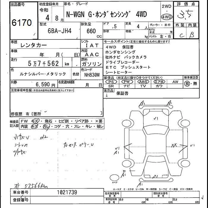 Honda N WGN с аукциона Японии JU Fukushima лот № 6170