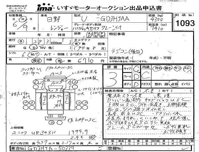 Hino RANGER с аукциона Японии Isuzu Kyushu лот № 1093