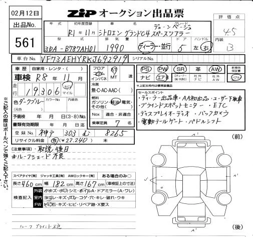 Citroen GRAND C4 с аукциона Японии ZIP Osaka лот № 561