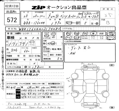 Mercedes-Benz A CLASS с аукциона Японии ZIP Osaka лот № 572