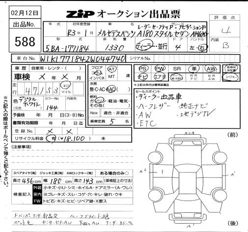 Mercedes-Benz A CLASS с аукциона Японии ZIP Osaka лот № 588