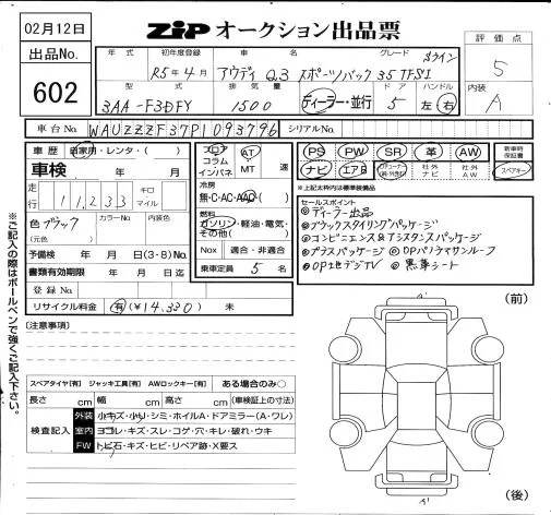 Audi Q3 с аукциона Японии ZIP Osaka лот № 602