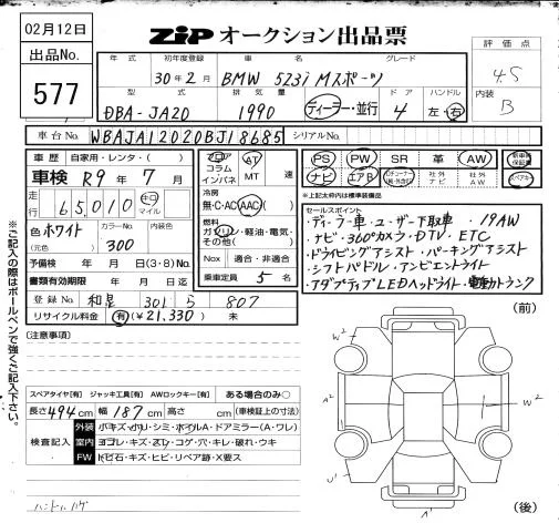 BMW 5-Series с аукциона Японии ZIP Osaka лот № 577