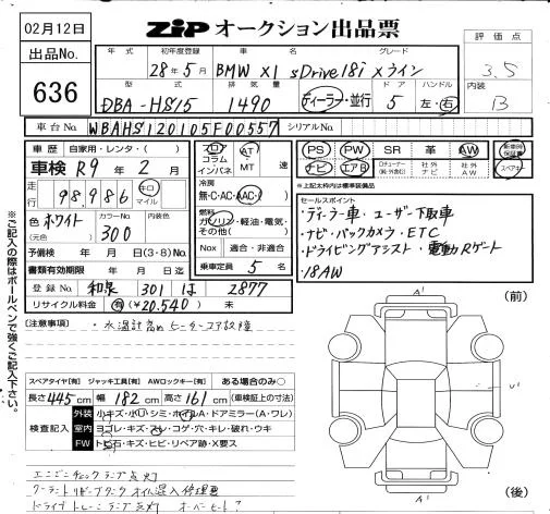 BMW X1 с аукциона Японии ZIP Osaka лот № 636