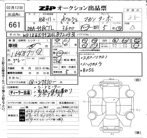 Porsche MACAN с аукциона Японии ZIP Osaka лот № 661