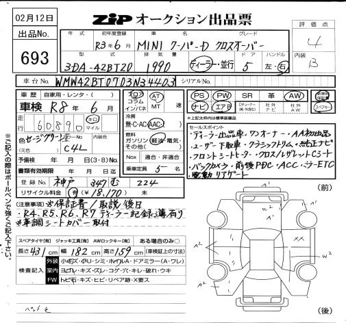 BMW MINI с аукциона Японии ZIP Osaka лот № 693