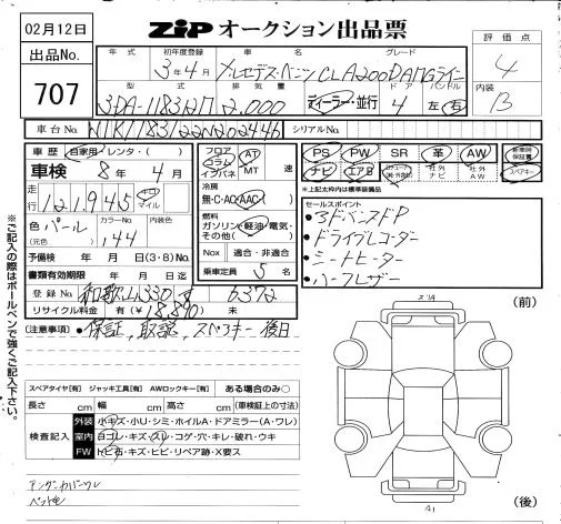 Mercedes-Benz CLA CLASS с аукциона Японии ZIP Osaka лот № 707