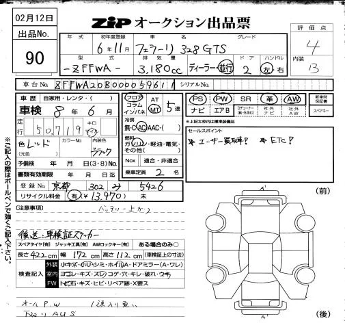 Ferrari 328 с аукциона Японии ZIP Osaka лот № 90