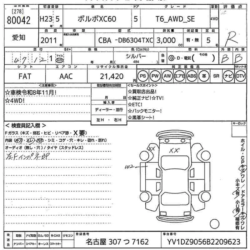 Volvo XC60 с аукциона Японии MIRIVE Aichi лот № 80042