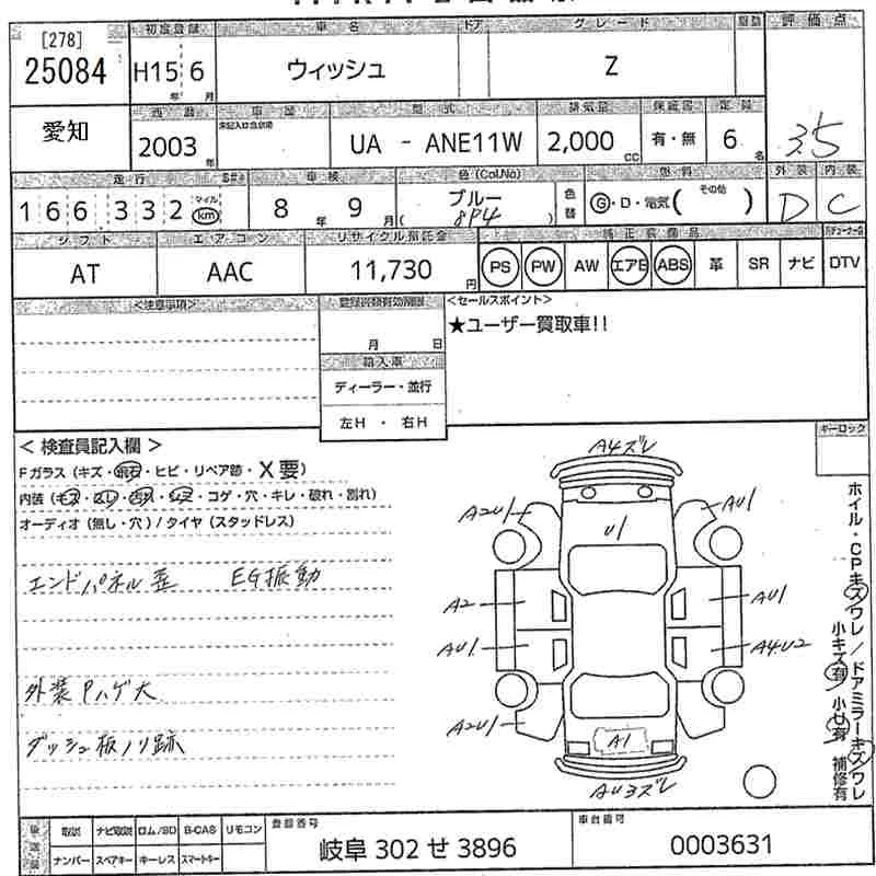 Toyota WISH с аукциона Японии MIRIVE Aichi лот № 25084