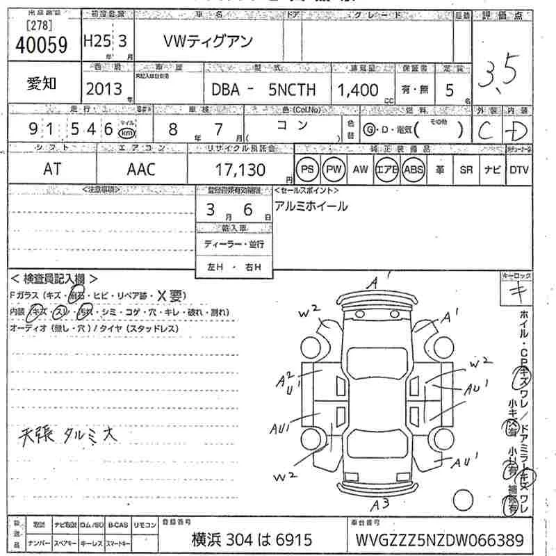 Volkswagen TIGUAN с аукциона Японии MIRIVE Aichi лот № 40059
