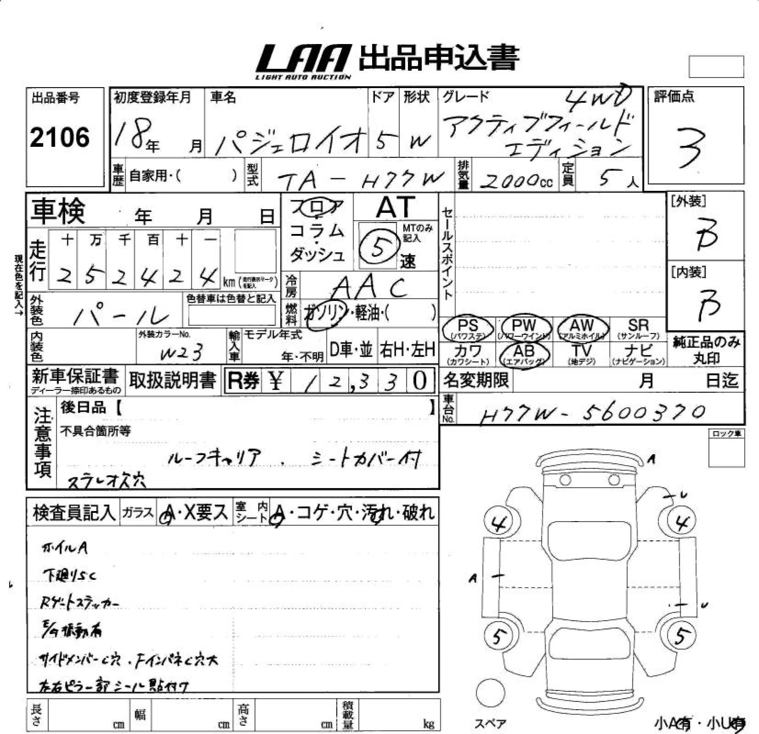 Mitsubishi PAJERO IO с аукциона Японии LAA Okayama лот № 2106