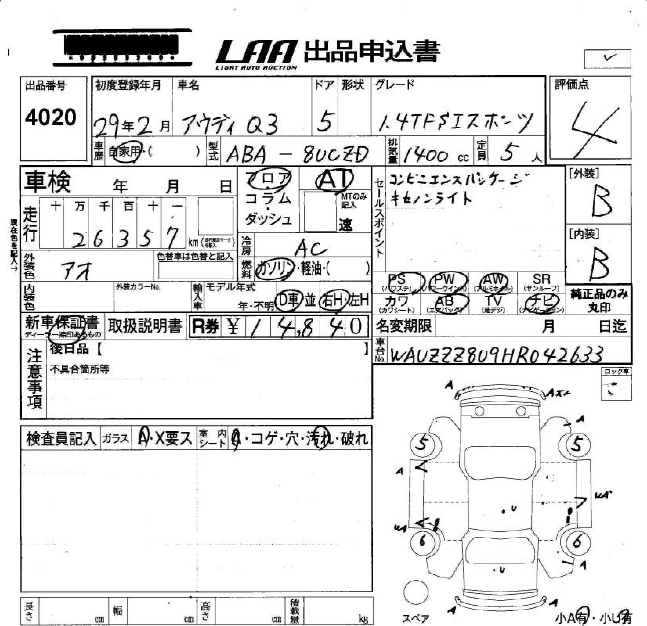 Audi Q3 с аукциона Японии LAA Okayama лот № 4020
