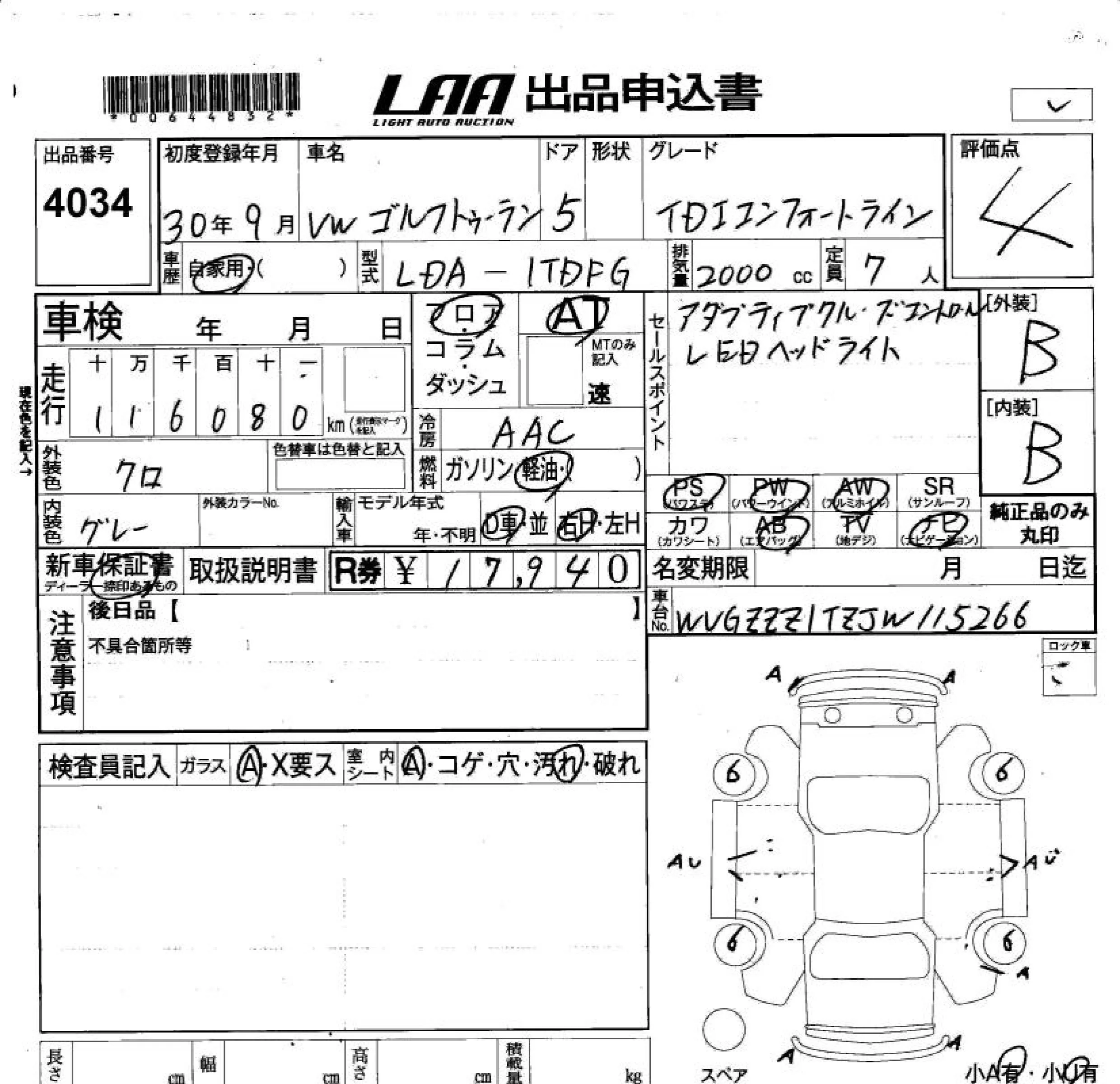 Volkswagen GOLF TOURAN с аукциона Японии LAA Okayama лот № 4034