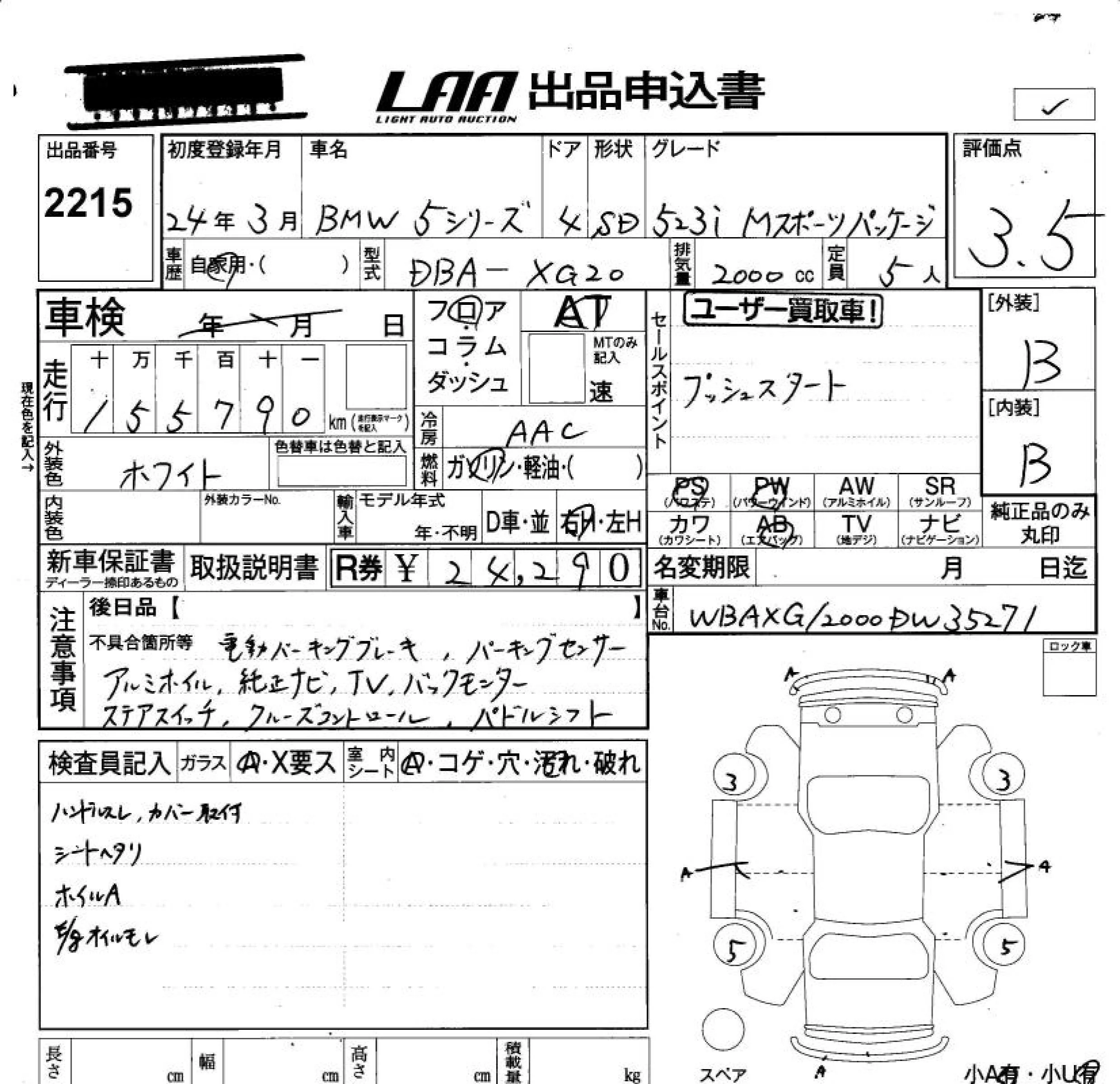 BMW 5-Series с аукциона Японии LAA Okayama лот № 2215