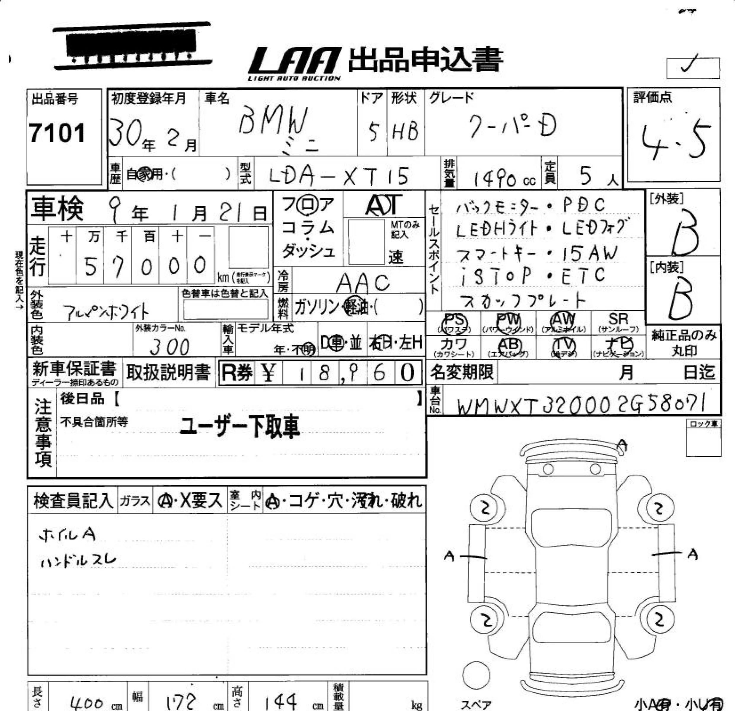 BMW MINI с аукциона Японии LAA Okayama лот № 7101