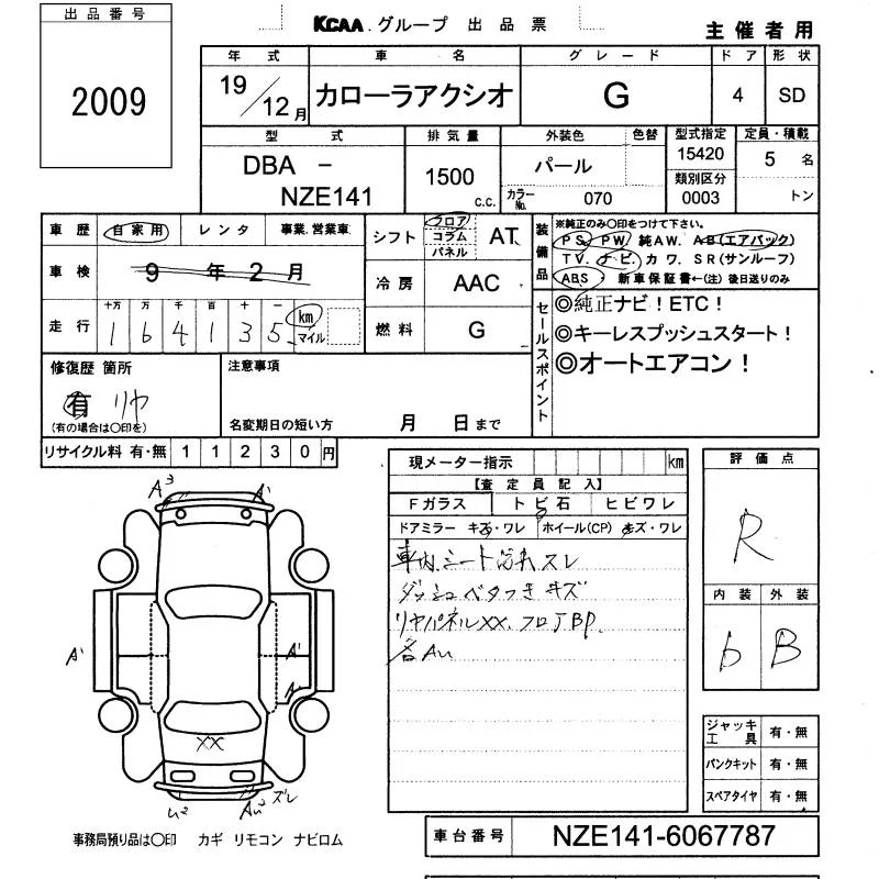 Toyota COROLLA AXIO с аукциона Японии KCAA Yamaguchi лот № 2009