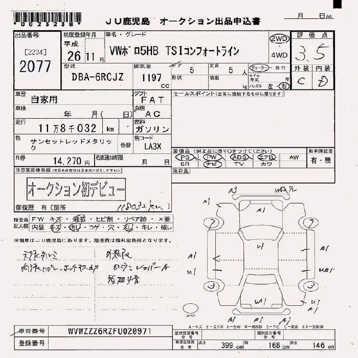 Volkswagen POLO с аукциона Японии JU Fukuoka лот № 2077
