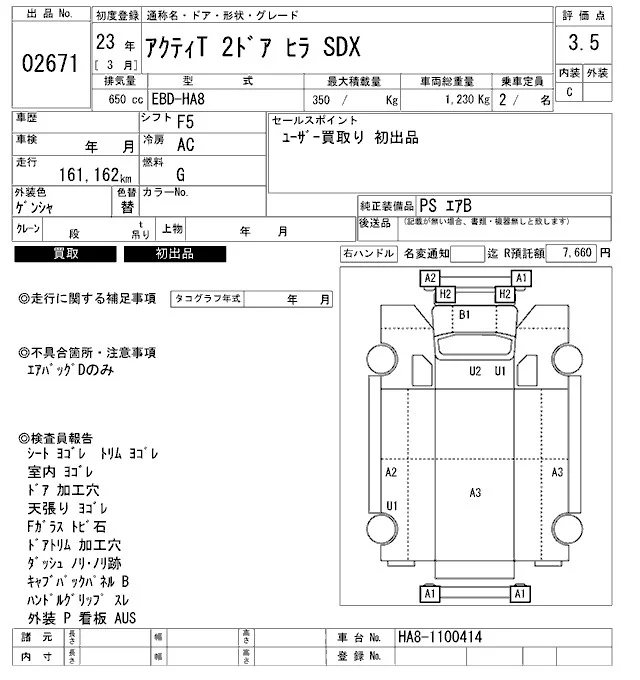 Honda ACTY TRUCK с аукциона Японии ARAI Bayside лот № 2671