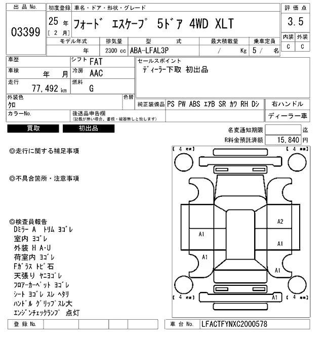 Ford ESCAPE с аукциона Японии ARAI Bayside лот № 3399