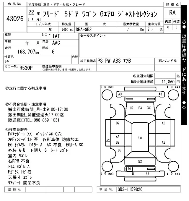 Honda FREED с аукциона Японии ARAI Bayside лот № 43026