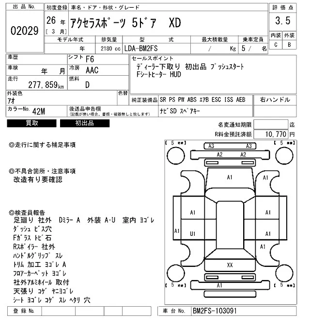 Mazda AXELA с аукциона Японии ARAI Bayside лот № 2029
