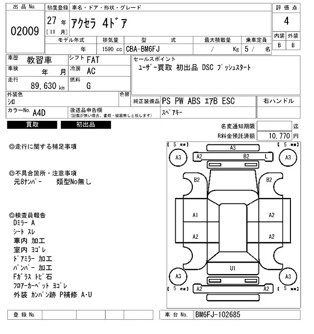 Mazda AXELA с аукциона Японии ARAI Bayside лот № 2009