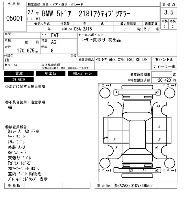 BMW 2-Series с аукциона Японии ARAI Bayside лот № 5001