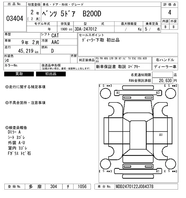 Mercedes-Benz B CLASS с аукциона Японии ARAI Bayside лот № 3404