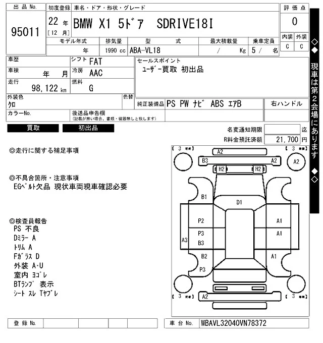 BMW X1 с аукциона Японии ARAI Bayside лот № 95011