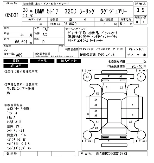 BMW 3-Series с аукциона Японии ARAI Bayside лот № 5031