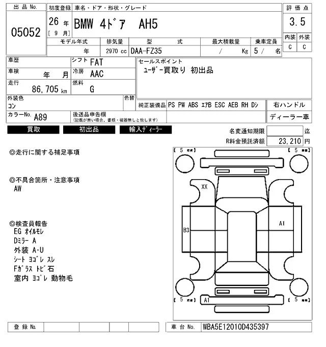 BMW 5-Series с аукциона Японии ARAI Bayside лот № 5052