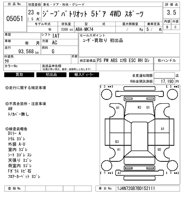 Chrysler JEEP PATRIOT с аукциона Японии ARAI Bayside лот № 5051