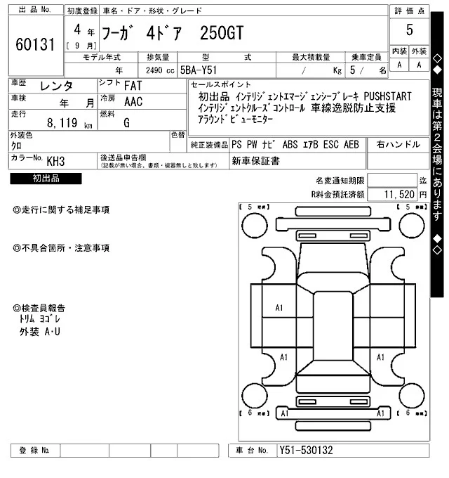 Nissan FUGA с аукциона Японии ARAI Bayside лот № 60131