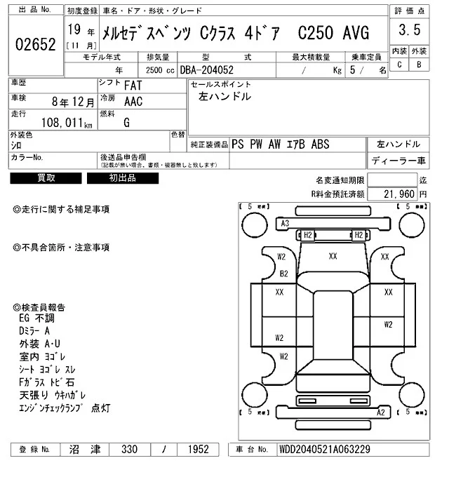 Mercedes-Benz C CLASS с аукциона Японии ARAI Bayside лот № 2652