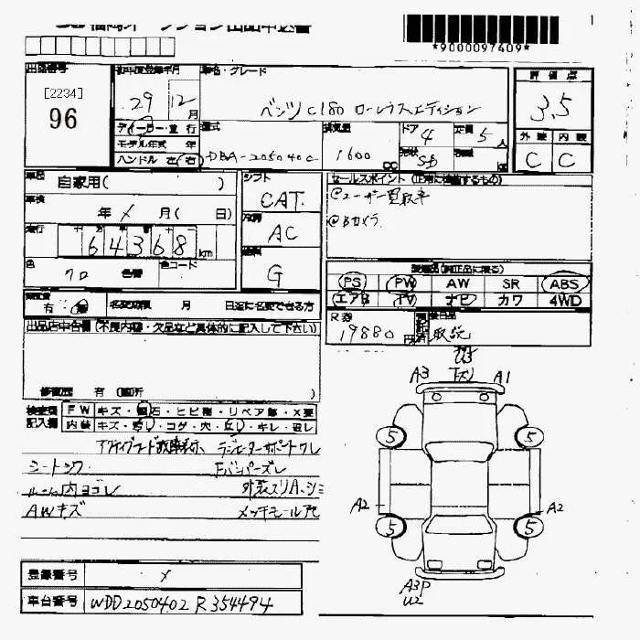 Mercedes-Benz C CLASS с аукциона Японии JU Fukuoka лот № 96