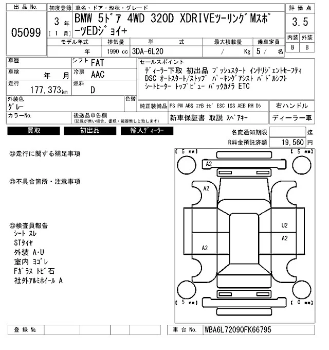 BMW 3-Series с аукциона Японии ARAI Bayside лот № 5099