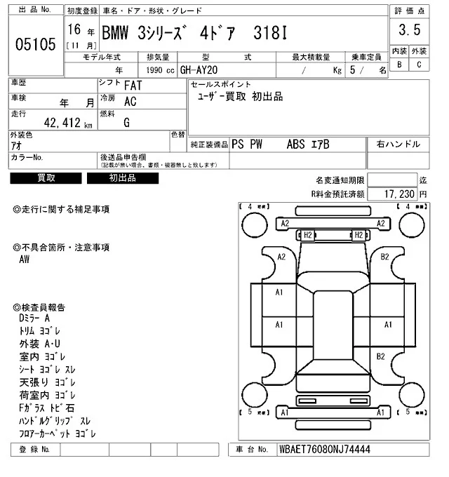 BMW 3-Series с аукциона Японии ARAI Bayside лот № 5105