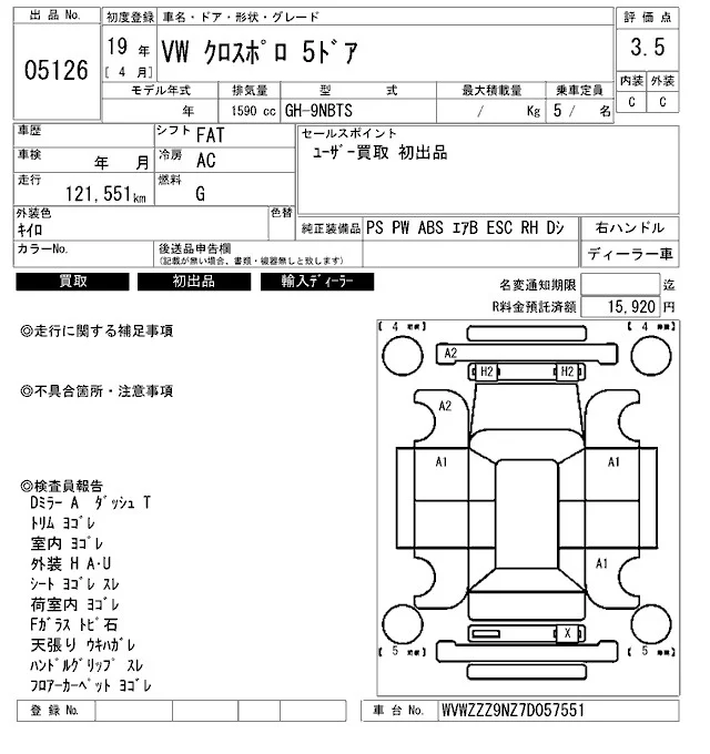 Volkswagen CROSS POLO с аукциона Японии ARAI Bayside лот № 5126