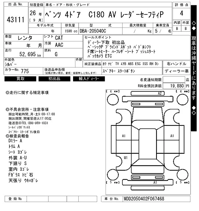 Mercedes-Benz C CLASS с аукциона Японии ARAI Bayside лот № 43111