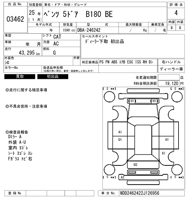 Mercedes-Benz B CLASS с аукциона Японии ARAI Bayside лот № 3462