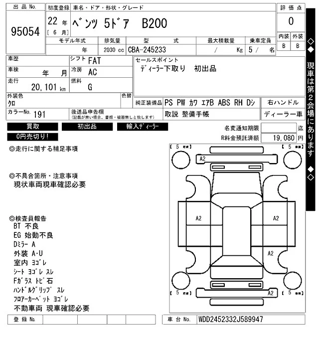 Mercedes-Benz B CLASS с аукциона Японии ARAI Bayside лот № 95054