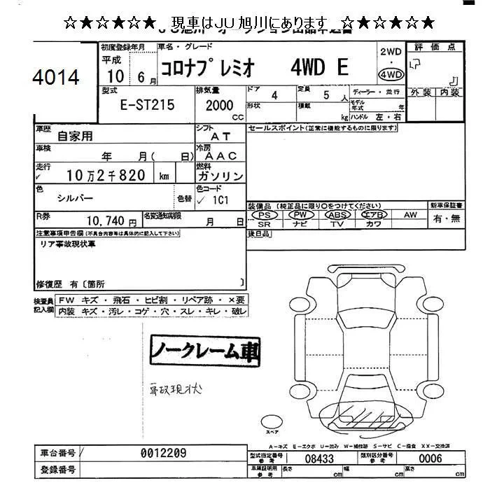 Toyota CORONA PREMIO с аукциона Японии JU Hokkaido лот № 4014