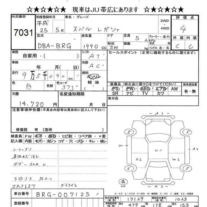 Subaru LEGACY с аукциона Японии JU Hokkaido лот № 7031