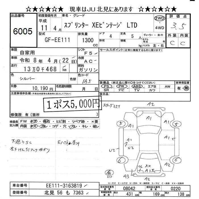 Toyota SPRINTER с аукциона Японии JU Hokkaido лот № 6005