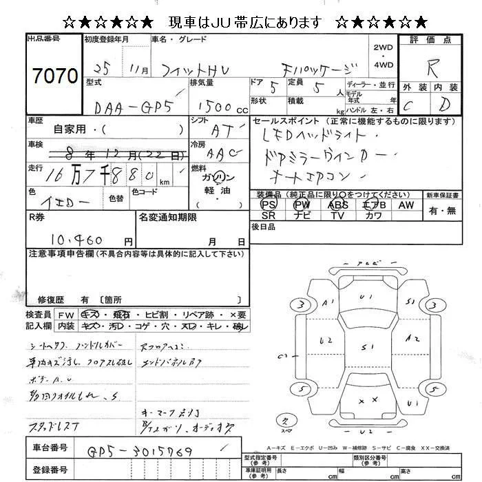 Honda FIT с аукциона Японии JU Hokkaido лот № 7070