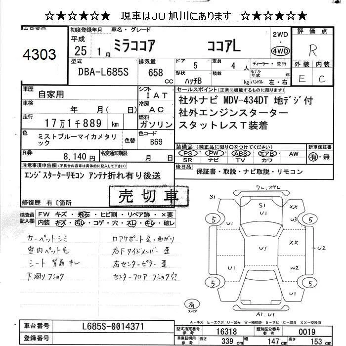 Daihatsu MIRA с аукциона Японии JU Hokkaido лот № 4303