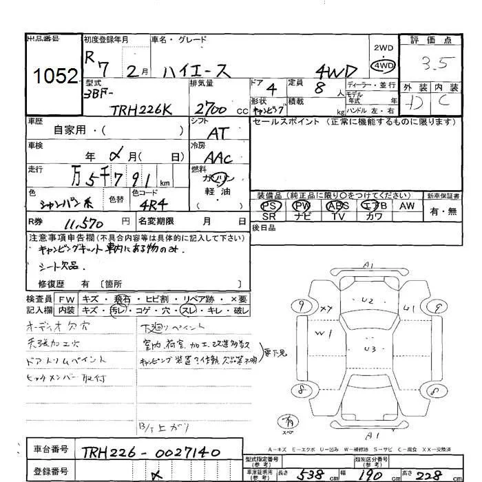 Toyota HIACE VAN с аукциона Японии JU Hokkaido лот № 1052