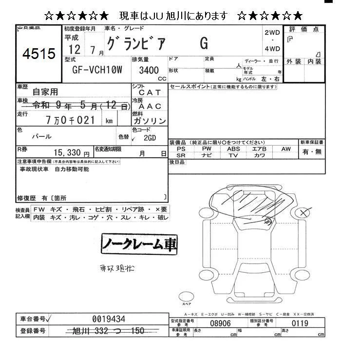 Toyota GRANVIA с аукциона Японии JU Hokkaido лот № 4515