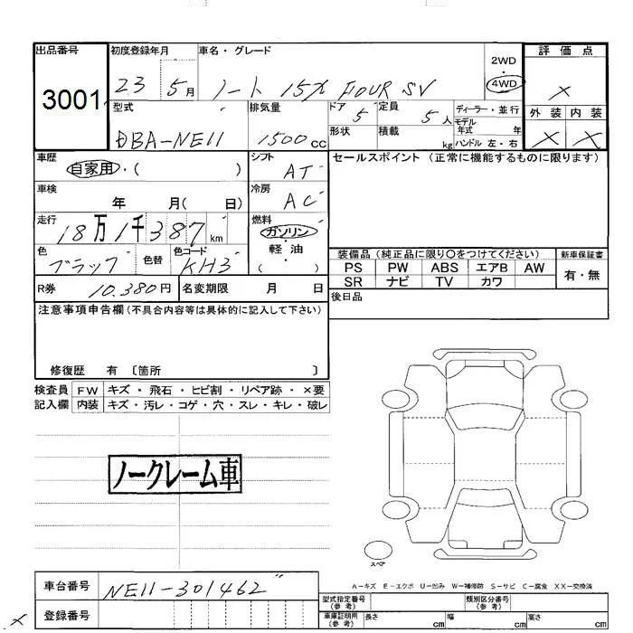 Nissan NOTE с аукциона Японии JU Hokkaido лот № 3001